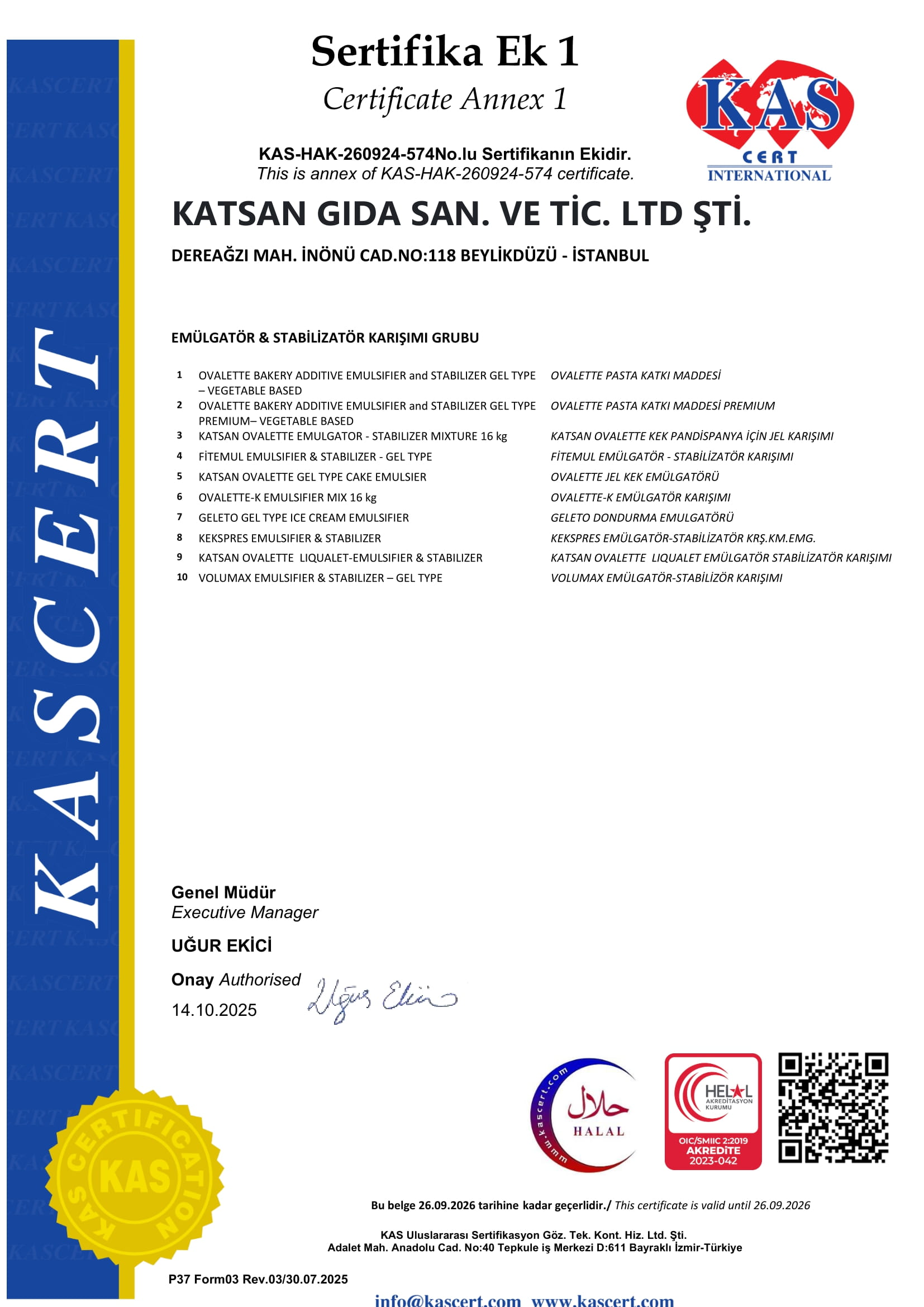 Unlu mamüller pasta ve dondurma imalatlarında kullanılan katkı maddeleri, emülgatörler, geliştiriciler, hazır toz karışımlar, krem şantiler, kremalar, jöleler, pasta ve dondurma sosları, meyve dolguları ve meyve preperatları, şuruplar, çikolata, konfiseri çeşitleri,madlen ve spesiyal çikolatalar, kuvertür, damla, drop, parça ve para çikolata, pralin, kakao tozu gibi daha birçok ürünün üretimini, pazarlamasını ve ihracatını yapan KATSAN aynı zamanda da dünyanın kendi alanında en büyük firmalarıyla çok yakın bir işbirliği içerisindedir ve bu gibi bazı yurtdışı firmaların Türkiye mümessilliğini yapmaktadır. Katsan catering ve perakende sektörlerinde de gerek kendi markası ile gerek "Private Label " olarak kaliteli ürünler üretmektedir.