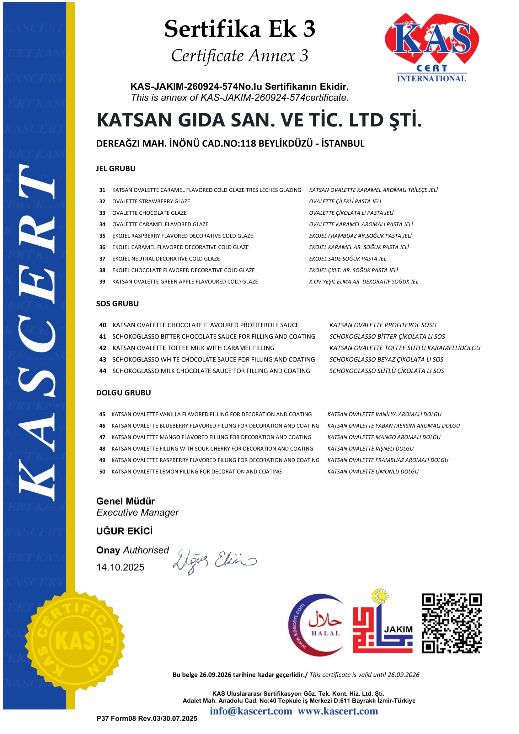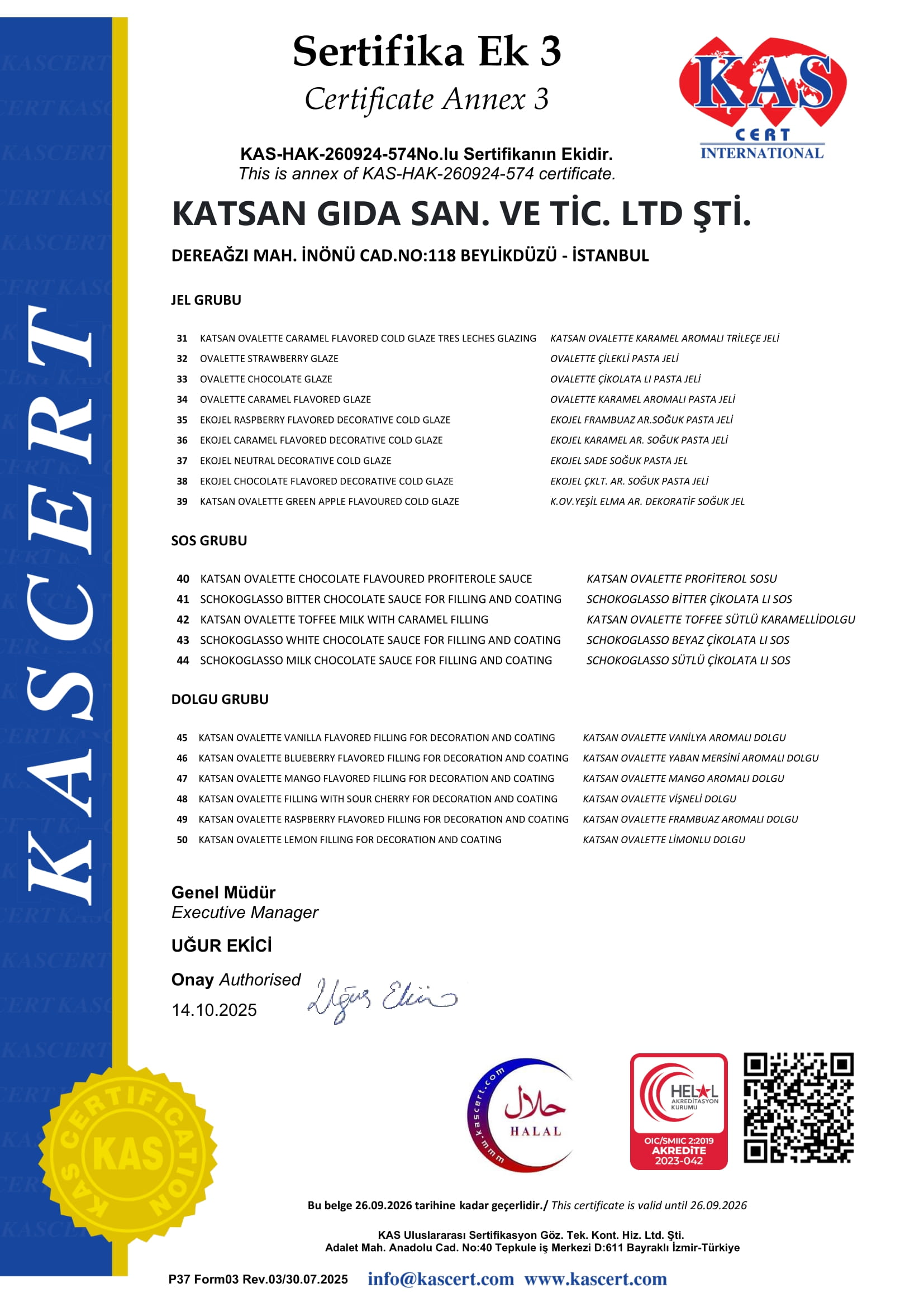 - Tanımlanmış ve ölçülebilir Kalite ve Gıda Güvenliği Kriterlerine uygun, insan sağlığını tehlikeye sokmayacak müşteri talep ve beklentilerine uygun ürünlerin (pastacılık toz ve jel ürün grupları, çikolata, kokolin , draje ve specıal ürün grupları) üretilmesini ve müşteriye sunulmasını sağlamak,